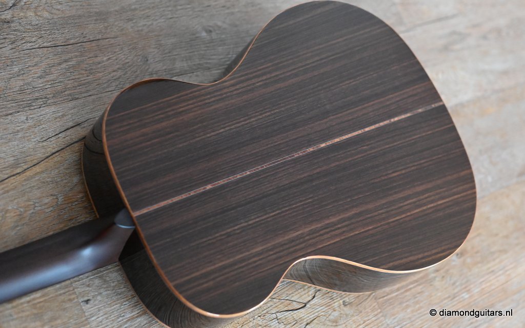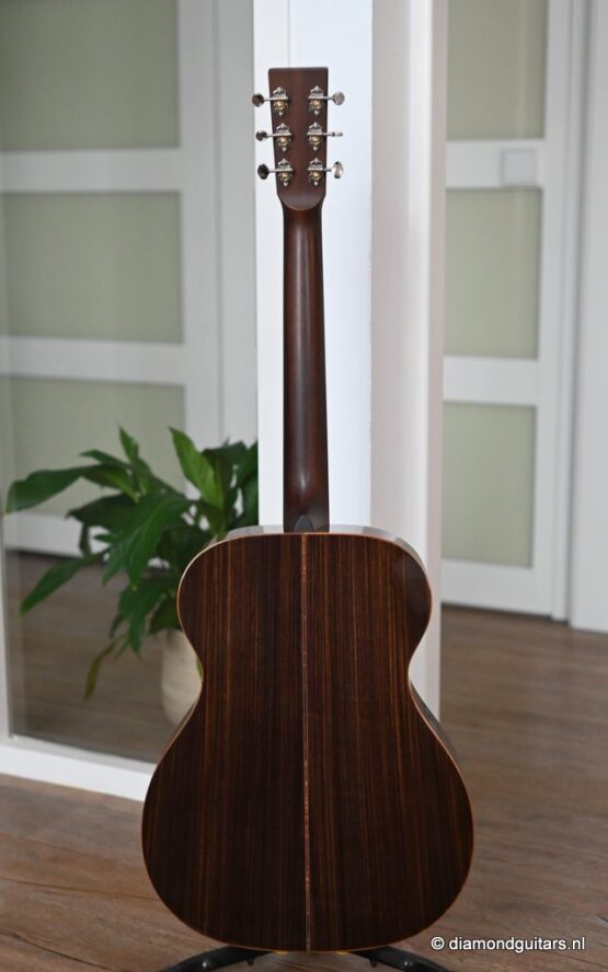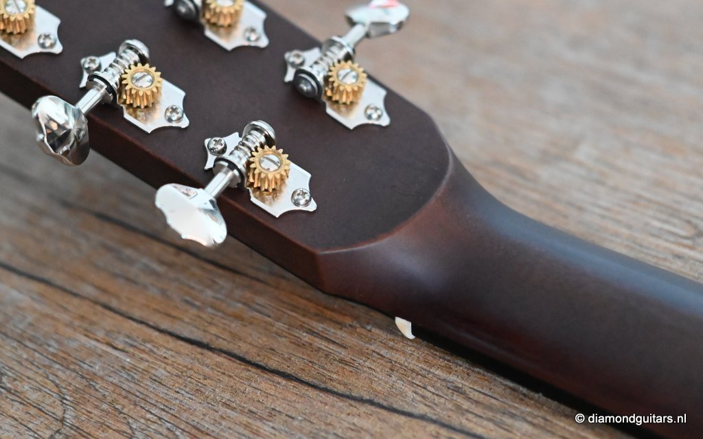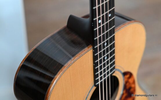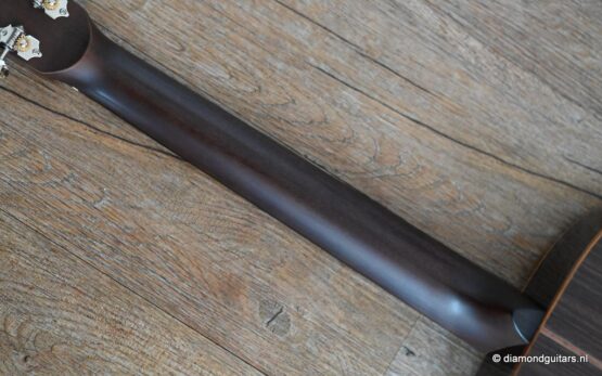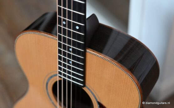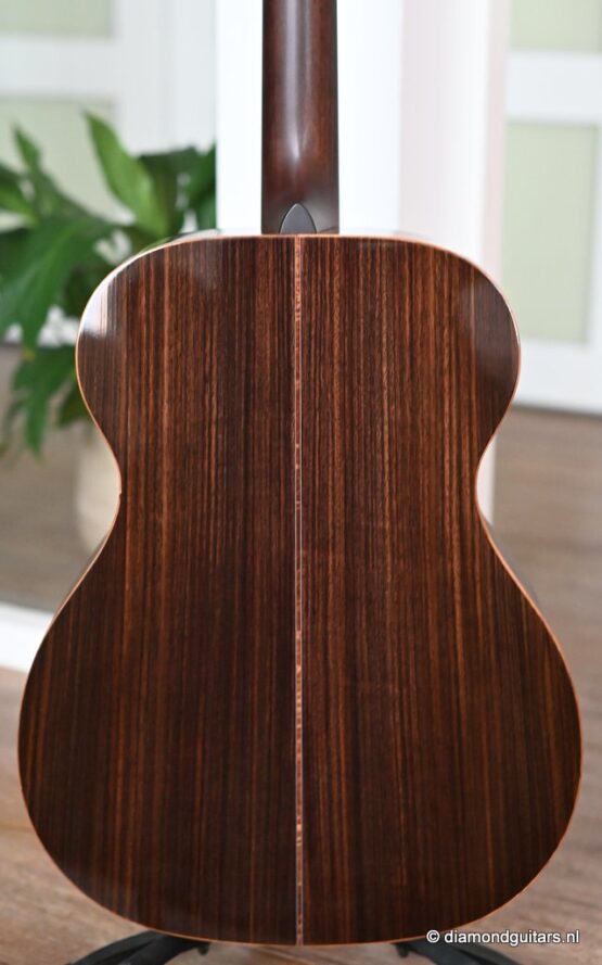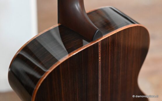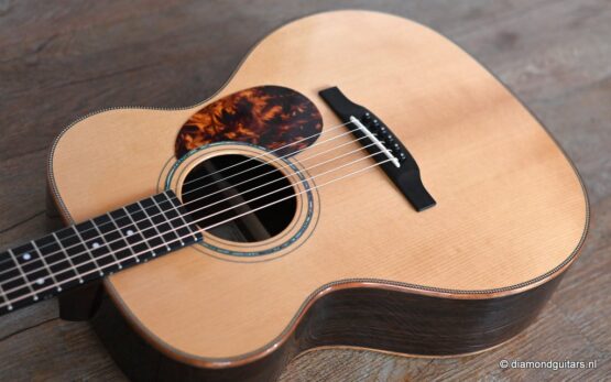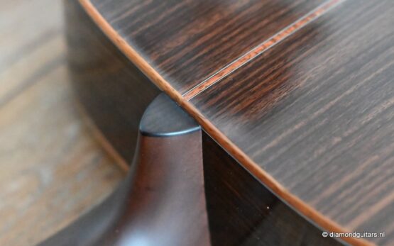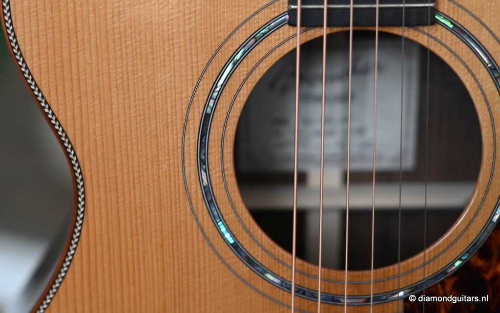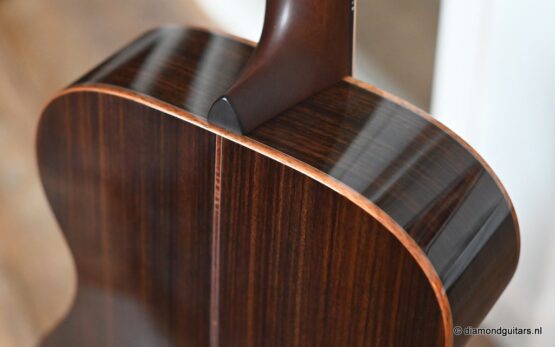 These options include the torrefied master grade (AAAAA) Adirondack Red Spruce top, Koa binding, open gear tuners and an Abalone rosette. The torrefied Mastergrade Adirondack is of the best of the best quality that can be found and very rare. Not only are these tops light and stiff, they are also extremely resonant. Robin Boucher was the first Luthier to use the torrefaction process for Adirondack Spruce soundboards, developing a unique roasting process with the University Laval of Quebec to accelerate wood aging. This industry-first innovation, launched in 2011, creates wood with enhanced stability, lighter weight, and improved tonal properties, giving it the sonic maturity of a naturally aged guitar