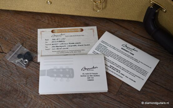 This wonderful Boucher Studio Goose SG-51 MV reflects master luthier Robin Boucher’s obsession with tone, precision, and responsiveness. Robin and his team live amongst the Adirondack Spruce forests of the Province of Quebec and source their own trees. Watch this vid to see the whole proces from milling the tree to final assembly. Just awesome! And the Goose name is derrived from the snow geese that annually migrate to the Appalachian Mountains. She is outfitted with Boucher’s Master Grade Pack and the Vintage Pack.