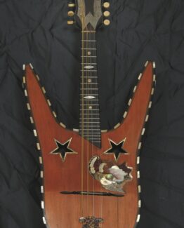 Lucien Gélas (1873–1944), a classical guitarist, teacher, and luthier from France. The guitar features two soundboards (tops) separated by a resonant space. The inner top is set at an angle relative to the outer one, creating a distinctive tilted profile.String Routing: Strings pass through the bridge on the inner top and attach at the bottom. This creates an angular tension change across the bridge, enhancing the inner top’s vibration. The patent was filed in Paris in 1905, and Gélas was awarded gold medals for his design at both the Bordeaux Exhibition (1907) and the Brussels Exhibition (1910). While Gélas invented and patented the design, guitars were built in collaboration with makers such as Théodore Gaudet, Jean Roviès, Beuscher, Richard Jacob, among others.