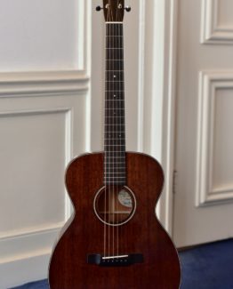 Featured appointments include grained ivoroid Wings fretboard inlays, an inlaid Ebony back strap, Ebony binding with ivoroid purfling, an Ebony/grained ivoroid rosette, and a striped ebony pickguard, along with Taylor’s Expression System 2 acoustic electronics. We asked Taylor to do a maintenance job on the guitar. The neck angle was perfected, and a fret dress was done. This makes the playability almost effortless. The Taylor techs also the Expression System to the latest version. This version has a less pronounced mid-rage and a bit of lower output to improve tone and feedback preventing feed. The new pickup also has an increased shielding from 7% in the old ES2 pickups to 13% in this latest version. The new ES2 system also includes the upgraded battery holder to fit the new Taylor Sense Smart Battery Box (not included) for measuring humidity, battery life, impact, and temperature of the guitar. She comes with a deluxe Taylor branded hardshell case.