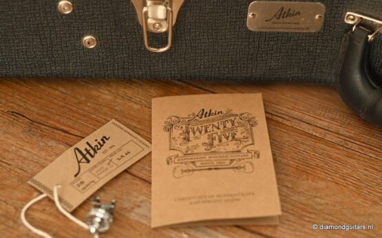 Alastair Atkin takes ‘vintage-inspired’ to the next level. The main inspiration for these guitars are the lightweight, characterful depression-era guitars of the 1930s – names such as Kalamazoo, Recording King, Cromwell, and Kel Kroyden will spring to mind for fans of such instruments. She is build with solid Mahogany with a lightweight scalloped bracing, giving the player a full, rich and dry voice that embodies those ever sought-after pre-war tones. Atkin’s OOO-14 is a classic embodiment of the ideas at play with a triple-O: small enough to be comfortable and articulate enough for finger-picking, yet big enough to deliver the projection and low end required for a well-rounded overall sound; especially important for strummed passages. A classic, vintage-inspired all-rounder. This guitar has been played and shows some minor dings and some light buckle rush on the back. Overall she’s is in excellent condition. Also, a K&K Mini Pure was installed including a strap button. Ready to go on stage of plugin to your home studio for some awesome recording. Listen to Alastair’s take on the model HERE, and the soundimpression of the actual guitar here: