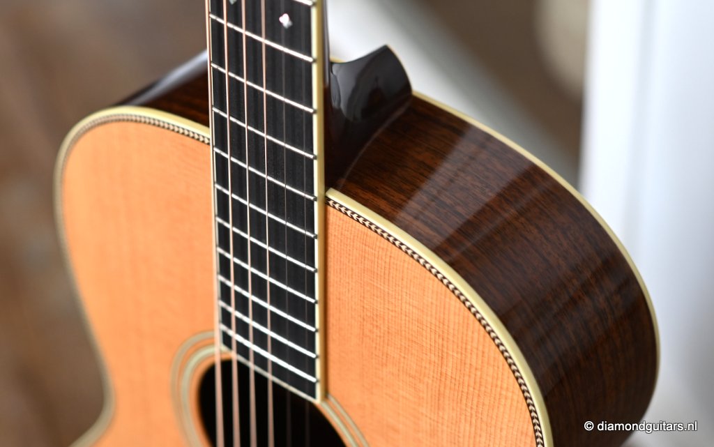 Classic Santa Cruz 000 12-fret built with premium Indian Rosewood and AAAA Sitka Spruce. This 12-fret design produces an open and airy tone while delivering a surprising amount of overall volume and bass response. She is extremely comfortable to play and had to put down.