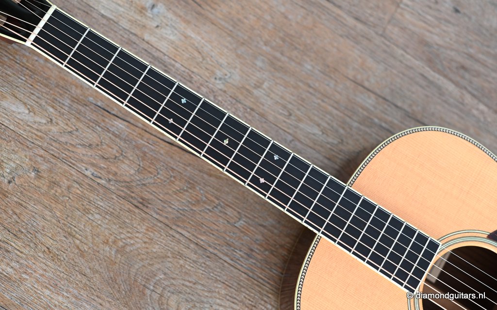 You’ve seen the SCGC OOO 12-fret on stage with Jeff Tweedy and Dave Matthews as a solid performing songwriter’s tool. It has also been heard in numerous recordings as a mainstay of pro session players. You will find an immediate purpose for the OOO and wonder why you didn’t have it in your arsenal all along. This one is in excellent condition showing some dings and scratches but nothing serious. Perfect neck angle and extreme low action. Very easy to play without any buzz. If you prefer a higher action we will make a new saddle ofcourse. Listen to a sound impression of the actual guitar here:
